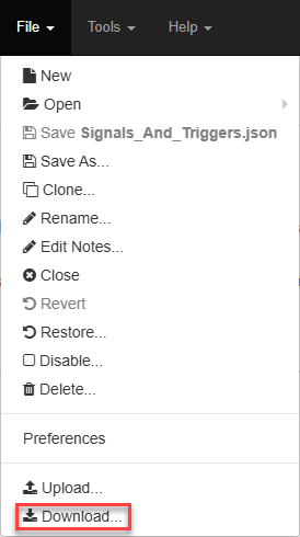 When working in Tasker, at some point you might need to move a workspace from one PC to another. You also might want to have the workspaces saved on your PC rather than in the JNIOR. The upload and download functionality in Tasker allows you to save workspaces as JSON files, as well as upload them onto the Tasker application as a workspace.
